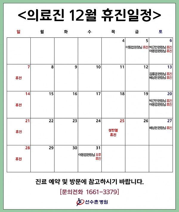 2025년 12월 의료진 휴진 일정 안내입니다.