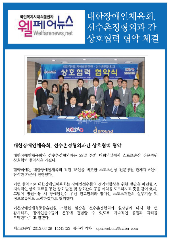 진료편의와 장애인 스포츠 재활의 실무기술 및 정보교류에 노력하기로 협의하였습니다.