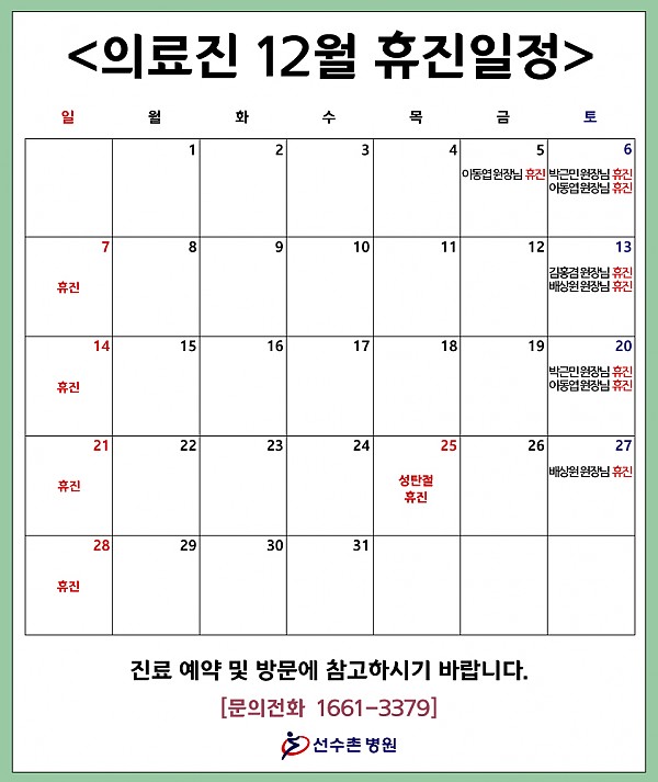 2025년 12월 의료진 휴진 일정 안내입니다.